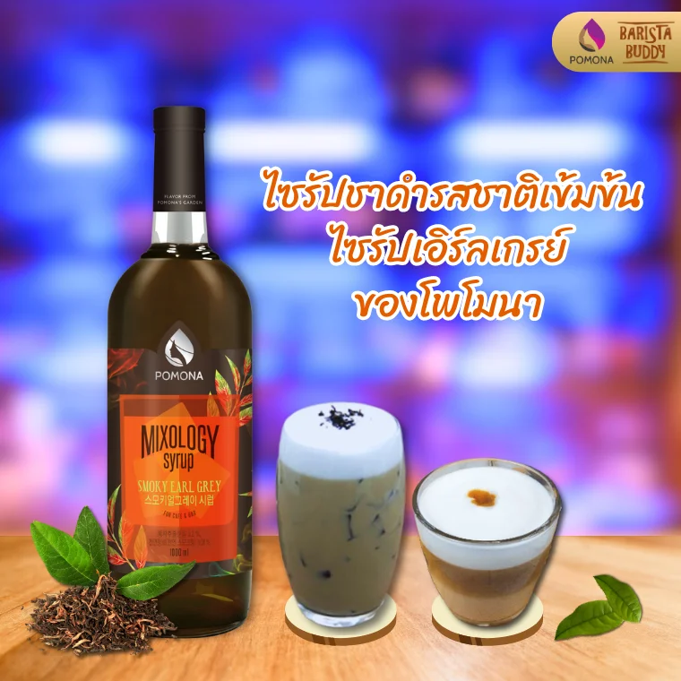 ไซรัปมิกซ์โซโลจี้ สโมกกี้ เอิร์ลเกรย์ ของโพโมนาเป็นไซรัปเกรดพรีเมี่ยมที่บาริสต้า บัดดี้นำเข้ามาจากเกาหลี เป็นไซรัปที่ได้รับแรงบันดาลใจในการคิดค้นสูตรมาจากชาเอิร์ลเกรย์ชาที่มีถิ่นกำเนิดในประเทศอังกฤษ ชาเอิร์ลเกรย์ คือ ชาที่มีสีทองอ่อนหรือสีน้ำตาลเข้ม ได้รับแรงบันดาลใจมาจากประเทศจีนที่มีการผลิตชาคุณภาพสูงและหอมหวานจนชาวอังกฤษเกิดความหลงใหลและสร้างรสชาติชองชาที่คล้ายกันขึ้น ด้วยการผสมน้ำมันมะกรูดกับชาดำเข้าไป หรือจะเพิ่มน้ำผึ้ง นมและมะนาวเข้าไปด้วยก็ได้ ขึ้นอยู่กับความชื่นชอบ ซึ่งการผสมของส่วนผสมต่างๆ นี้นับเป็นการเกิดชารสชาติใหม่ที่ไม่มีในประเทศจีนมาก่อน โดยที่มาของชื่อ “ชาเอิร์ลเกรย์” มาจากชื่อของนายกรัฐมนตรีของสหราชอาณาจักรที่ดำรงตำแหน่งในปี ค.ศ. 1830 - 1834 “ชาลส์เกรย์”