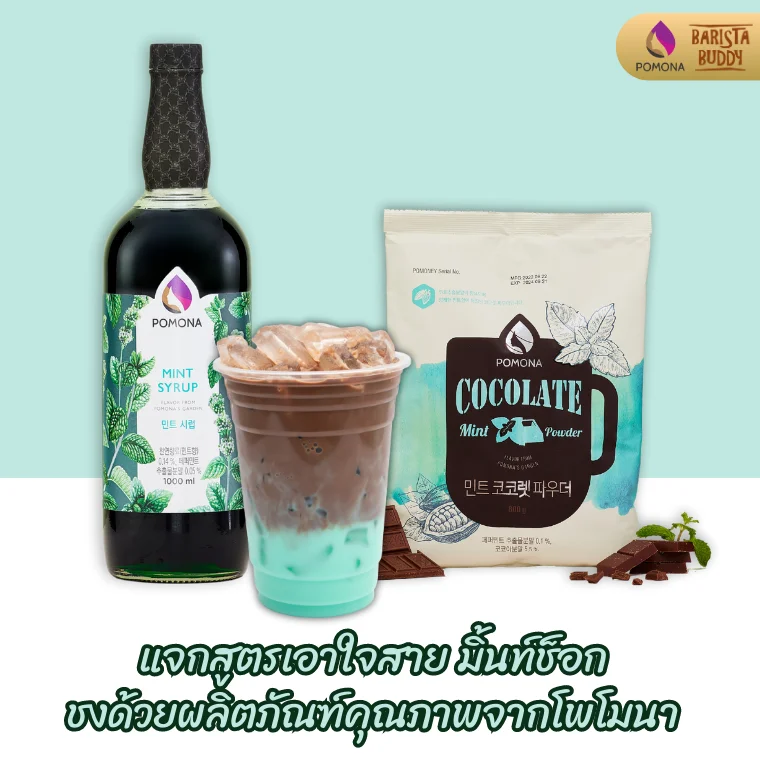 ซึ่งส่วนผสมชูรสชาติของทั้ง 2 สูตร ไม่ว่าจะเป็น ผงโกโก้พรีเมี่ยม (Cocoa Powder) ของบาริสต้า บัดดี้ ผงช็อกโกแลตมิ้นท์ โพโมนา (Cocolate Mint Powder) หรือไซรัปมิ้นท์ โพโมนา (Mint Syrup) สามารถหาซื้อได้ที่เว็บไซต์ของเรา หรือซื้อผ่านช่องทางออนไลน์ Lazada Shopee และ Tiktok