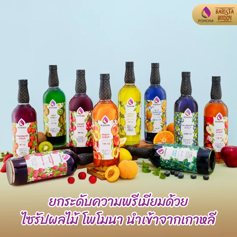 Pomona Syrup เป็นแบรนด์ไซรัปผลไม้นำเข้าจากประเทศเกาหลีเกรดพรีเมียม ทำให้ช่วยยกระดับความพรีเมียมให้คาเฟ่ หรือธุรกิจของคุณได้ จะมีกลิ่นหอม หวานละมุนผลไม้ รสชาติจากผลไม้ธรรมชาติคุณภาพสูง นิยมนำมาใช้ทำเมนูเครื่องดื่มและท็อปปิ้งขนม มีตัวเลือกกลิ่นและรสชาติให้เลือกหลากหลาย มีทุก ไซรัป รสชาติยอดนิยมไม่ว่าจะเป็นไซรัปพีช ไซรัปแอปเปิ้ลหรือไซรัปสตรอว์เบอร์รี และอีกหลายรสชาติที่สามารถนำมาสร้างสรรค์เมนูต่างๆ รสชาติดี ทำให้หลายร้านกาแฟ ร้านอาหารหรือคาเฟ่ดังนิยมใช้ เพราะสามารถสร้างสรรค์เมนูได้หลากหลาย