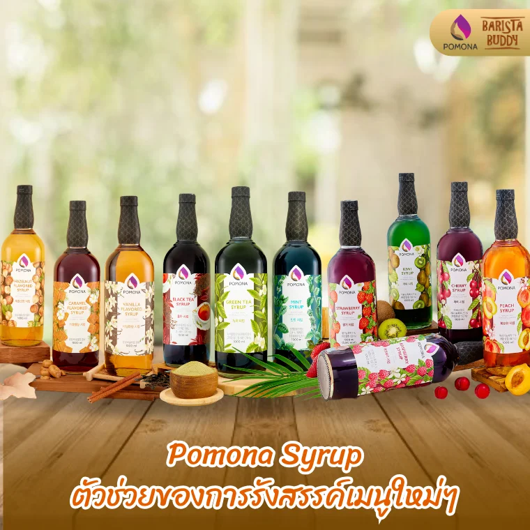 Pomona หรือโพโมนา คือทางเลือกที่ดีที่สุดของผงชง ไซรัป ซอสและสมูทตี้ โพโมนาเป็นชื่อของเทพีแห่งผลไม้และต้นไม้ของชาวโรมัน และยังเป็นชื่อของแบรนด์ที่เชื่อมโยงความหวานและความสดชื่นเข้ากับเครื่องดื่ม แบรนด์โพโมนาถูกก่อตั้งภายใต้แบรนด์ KAFFA GROUP โดยได้รับแรงบันดาลใจมาจากเทพีแห่งผลไม้และต้นไม้ของชาวโรมัน มีจุดมุ่งหมายที่จะผลิตและจัดจำหน่ายผลิตภัณฑ์ที่สดใหม่และใช้ส่วนผสมที่มาจากธรรมชาติเท่านั้น วัตถุดิบทุกอย่างที่ผลิตโดยโพโมนาจะเป็นวัตถุดิบเกรดพรีเมี่ยมจากเกาหลีที่คงคุณภาพเสมือนออกจากสวนผลไม้ ไม่ใช้สารกันบูด เพราะโพโมนาคำนึงถึงสุขภาพของผู้บริโภคทุกคน และนอกจากสุขภาพที่โพโมนาคำนึงถึงแล้ว โพโมนายังภูมิใจในรสชาติที่มีคุณภาพสูงในทุกไลน์สินค้าอีกด้วย ซึ่งสินค้าส่วนใหญ่ของโพโมนาจะแบ่งเป็น ไซรัป ซอส สมูทตี้ และผงชงที่ครอบคลุมการรังสรรค์เครื่องดื่มทุกประเภท ไม่ว่าจะเป็นชา กาแฟ น้ำผลไม้หรือน้ำหวานและยังเหมาะกับการรังสรรค์เมนูใหม่ๆ ในทุกสถานที่และทุกเวลาอีกด้วย โดยเฉพาะกับไลน์สินค้า Pomona Syrup ที่สามารถเชื่อมโยงรสชาติความหวาน ความอร่อยให้เข้ากับ ชา กาแฟ ม็อกเทล ค็อกเทลและเครื่องดื่มอีกหลากหลายประเภท ซึ่งในวันนี้เราจะมาแนะนำกลุ่มสินค้าไซรัป โพโมนา กลุ่ม ไซรัป Pomona รีวิว โดดเด่นเรื่องรสชาติ หลายร้านดังยกให้เป็นสินค้ายอดนิยมที่ต้องมีติดร้าน ดังนี้