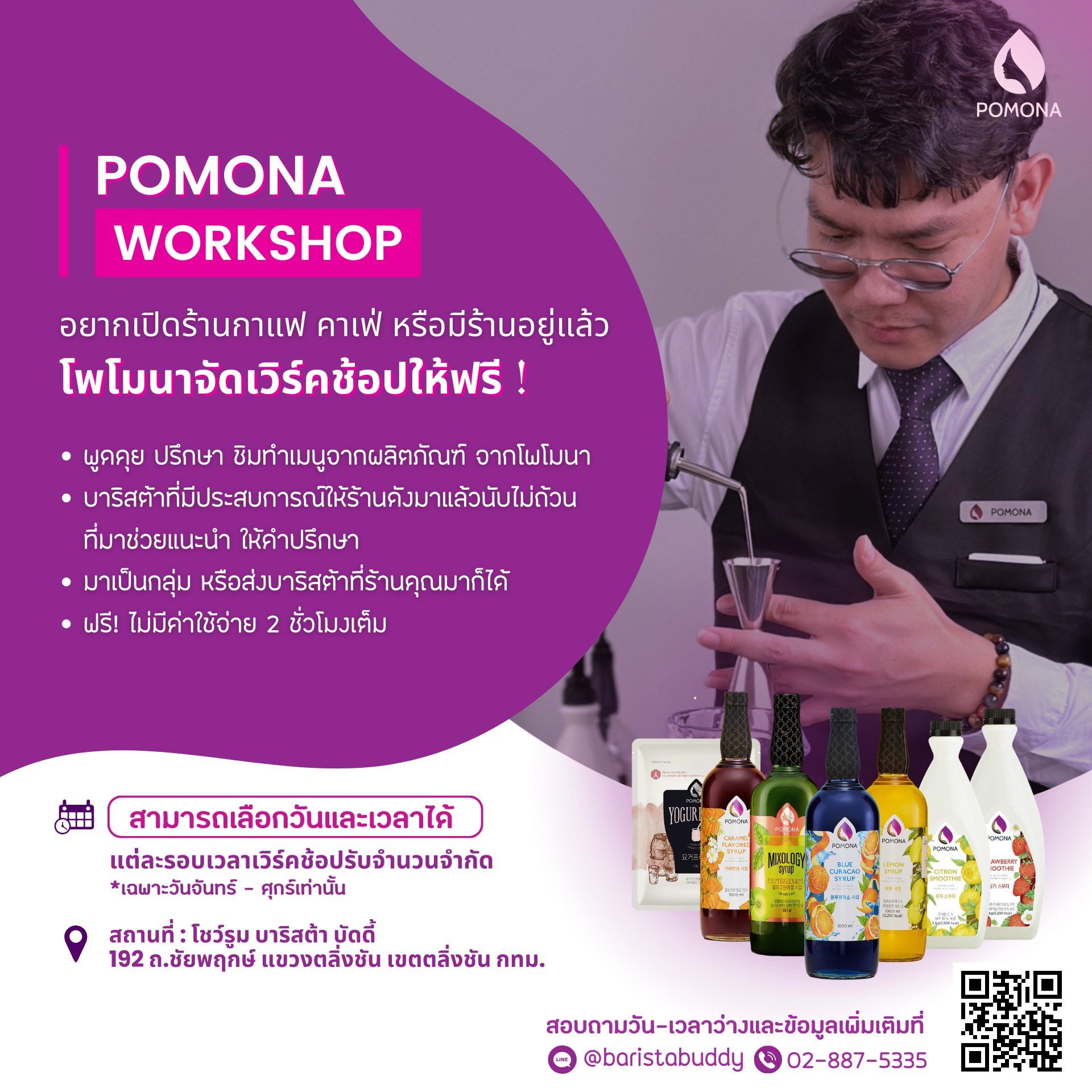 พูดคุย ปรึกษา ชิมทำเมนูจากผลิตภัณฑ์ จากโพโมนาบาริสต้าที่มีประสบการณ์ให้ร้านดังมาแล้วนับไม่ถ้วนที่มาช่วยแนะนำ ให้คำปรึกษามาเป็นกลุ่ม หรือส่งบาริสต้าที่ร้านคุณมาก็ได้ ฟรี! ไม่มีค่าใช้จ่าย 2 ชั่วโมงเต็ม