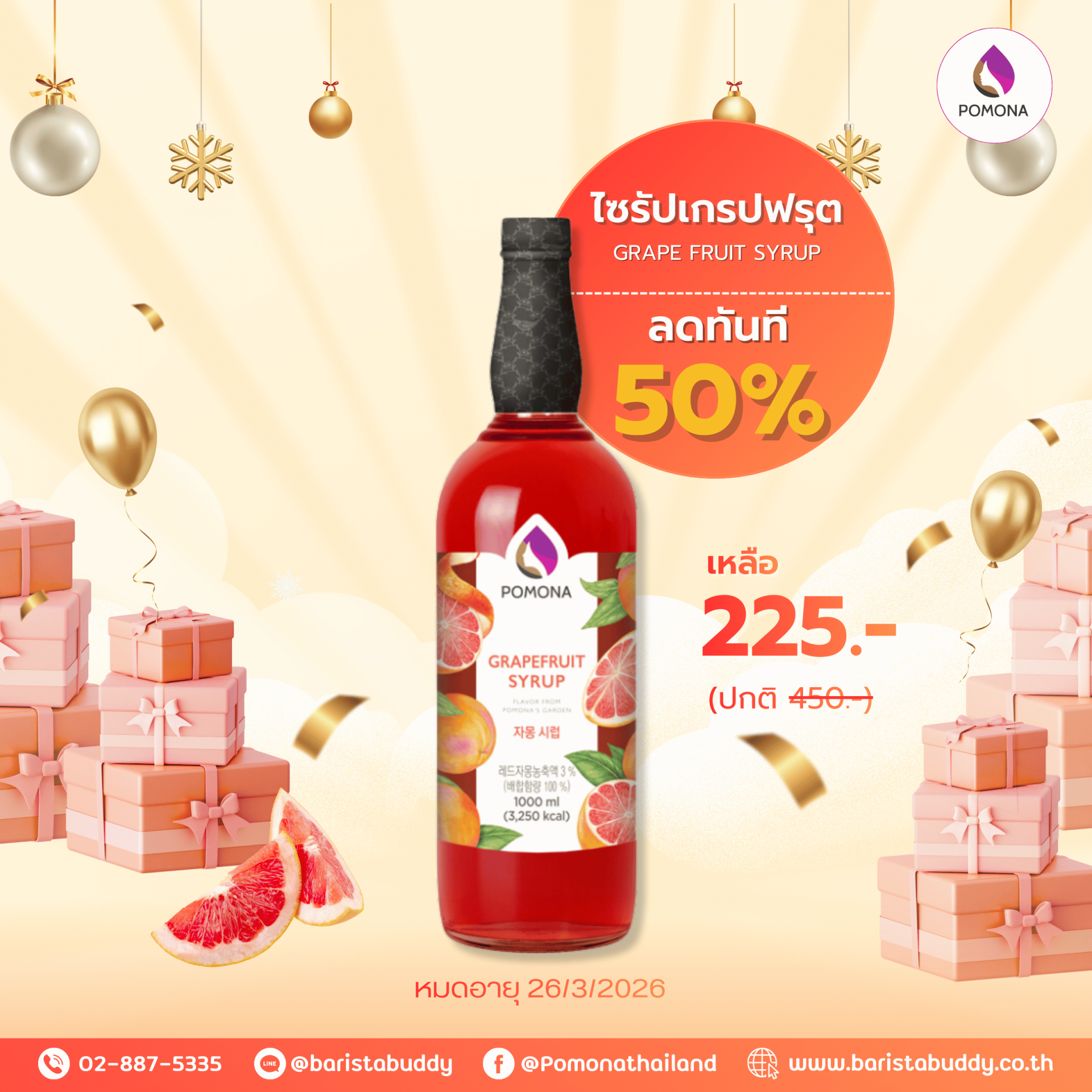 • ไซรัปเกรปฟรุต ลด 50% เหลือเพียง 225.- (ปกติ 450.-) และแถมฟรี! สูตร 5 เมนู