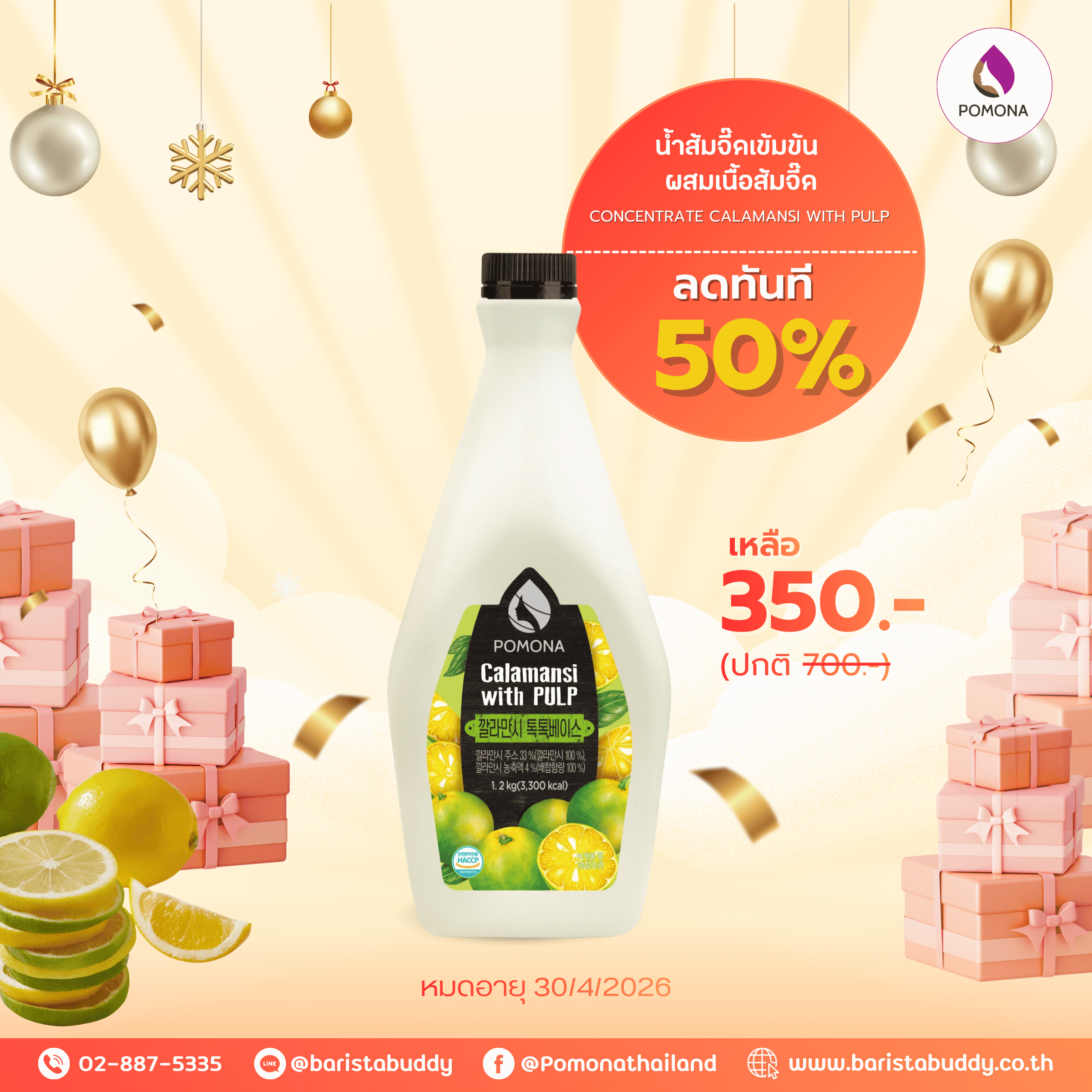 • น้ำส้มจี๊ดเข้มข้น ผสมเนื้อส้มจี๊ด ลด 50% เหลือเพียง 350.- (ปกติ 700.-) และแถมฟรี! สูตร 5 เมนู
