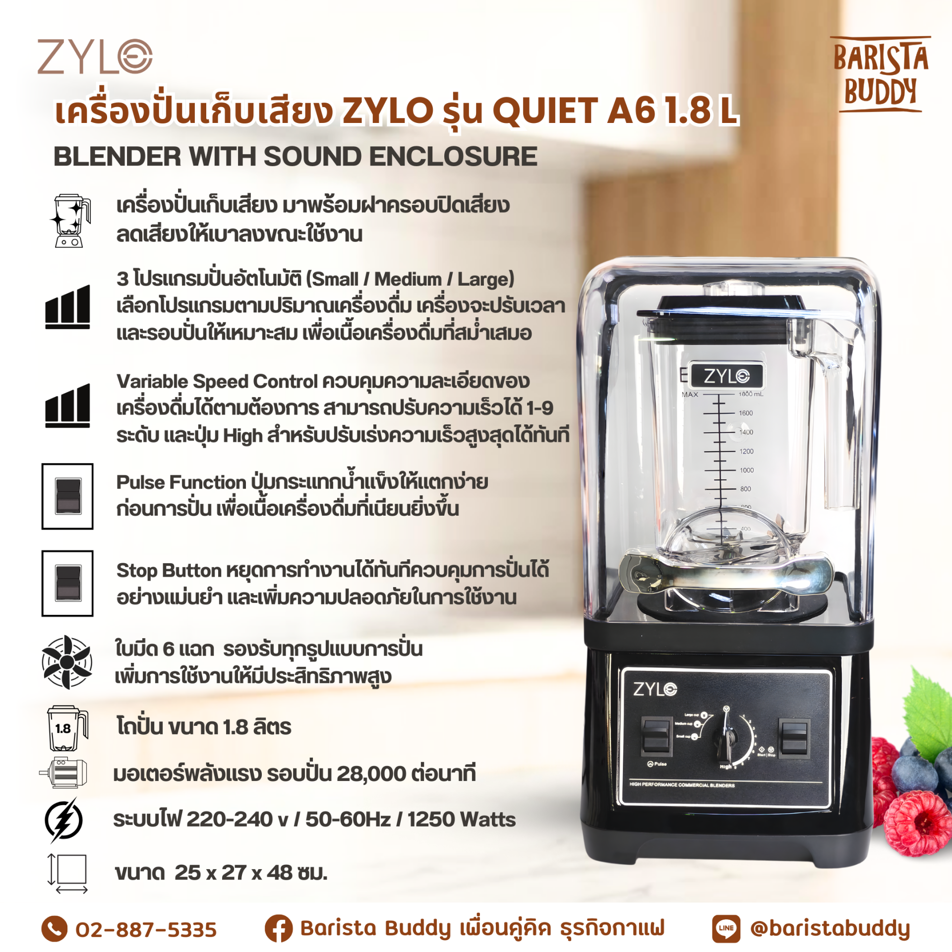 เครื่องปั่นเก็บเสียง ZYLO รุ่น Quiet A6 1.8 L